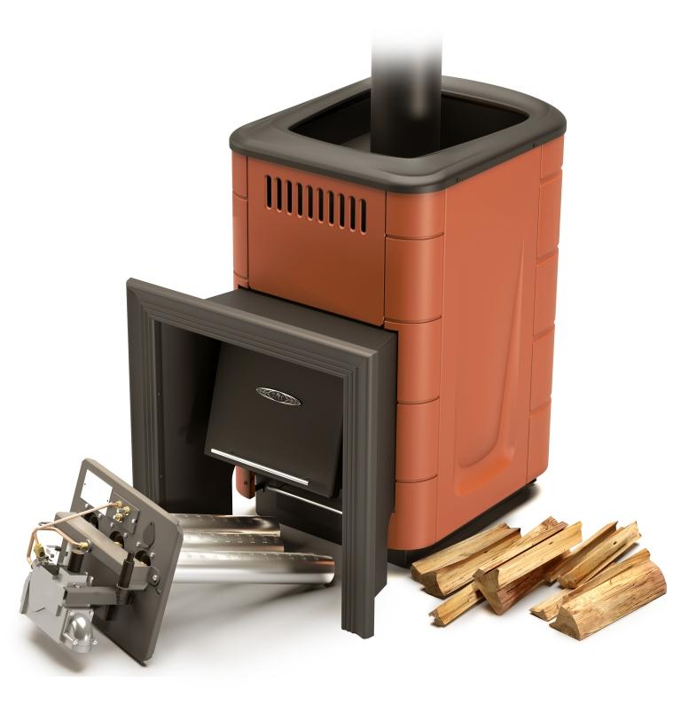 Конечно, не стоит. Потому что TMF представляет новую газодровяную банную печь «Оранж Блю». Ее название говорит само за себя. Оранжевым пламенем в ней горят дрова, а голубым пламенем в ней горит газ.
